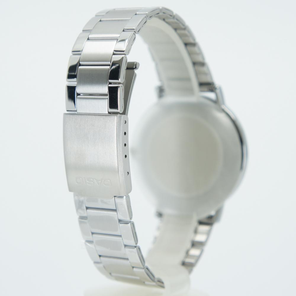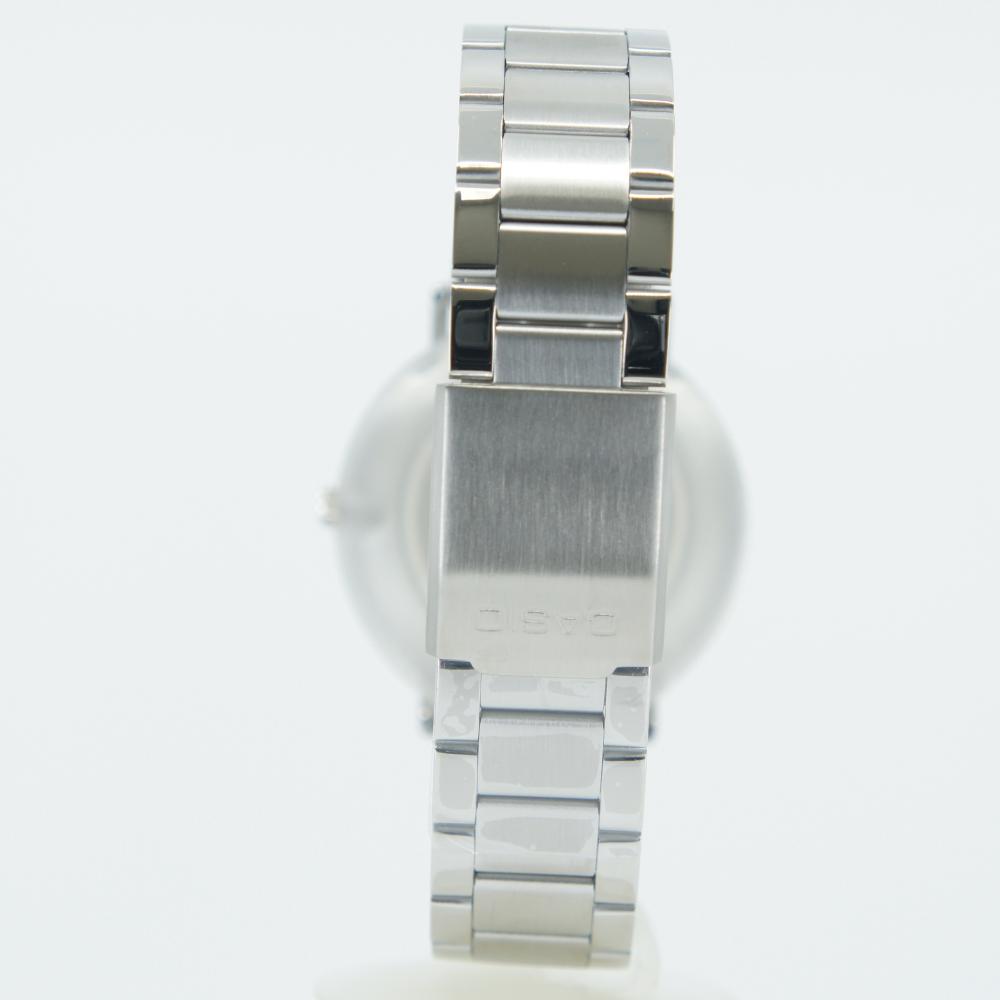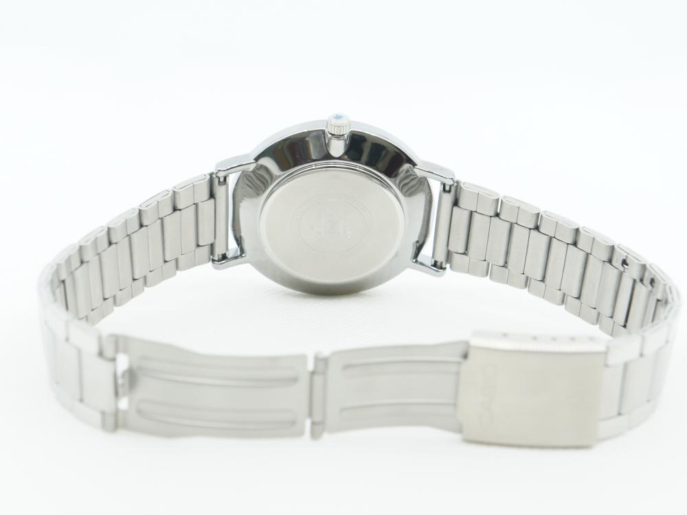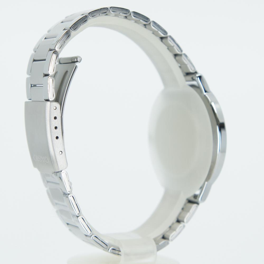 This wristwatch from Casio showcases a refined elegance through the harmonious combination of a deep white dial and a stainless steel case.