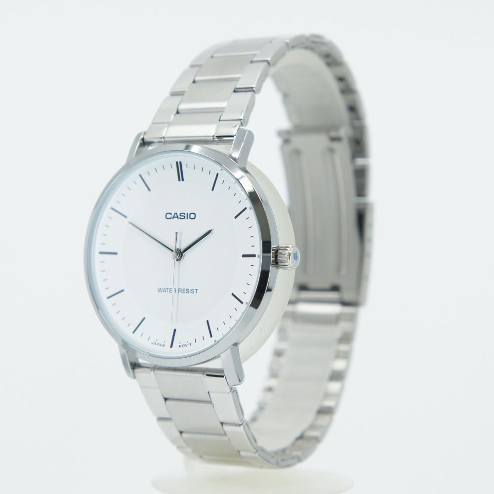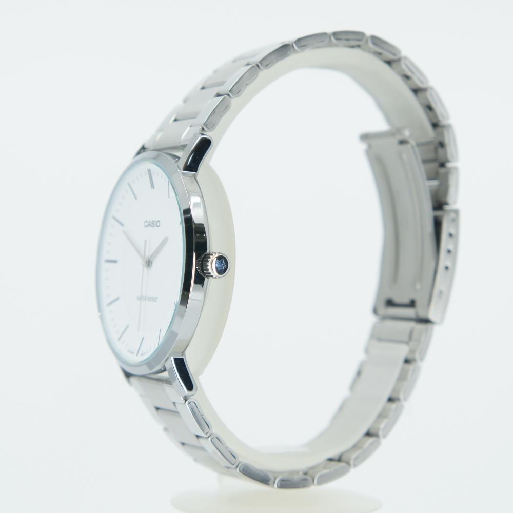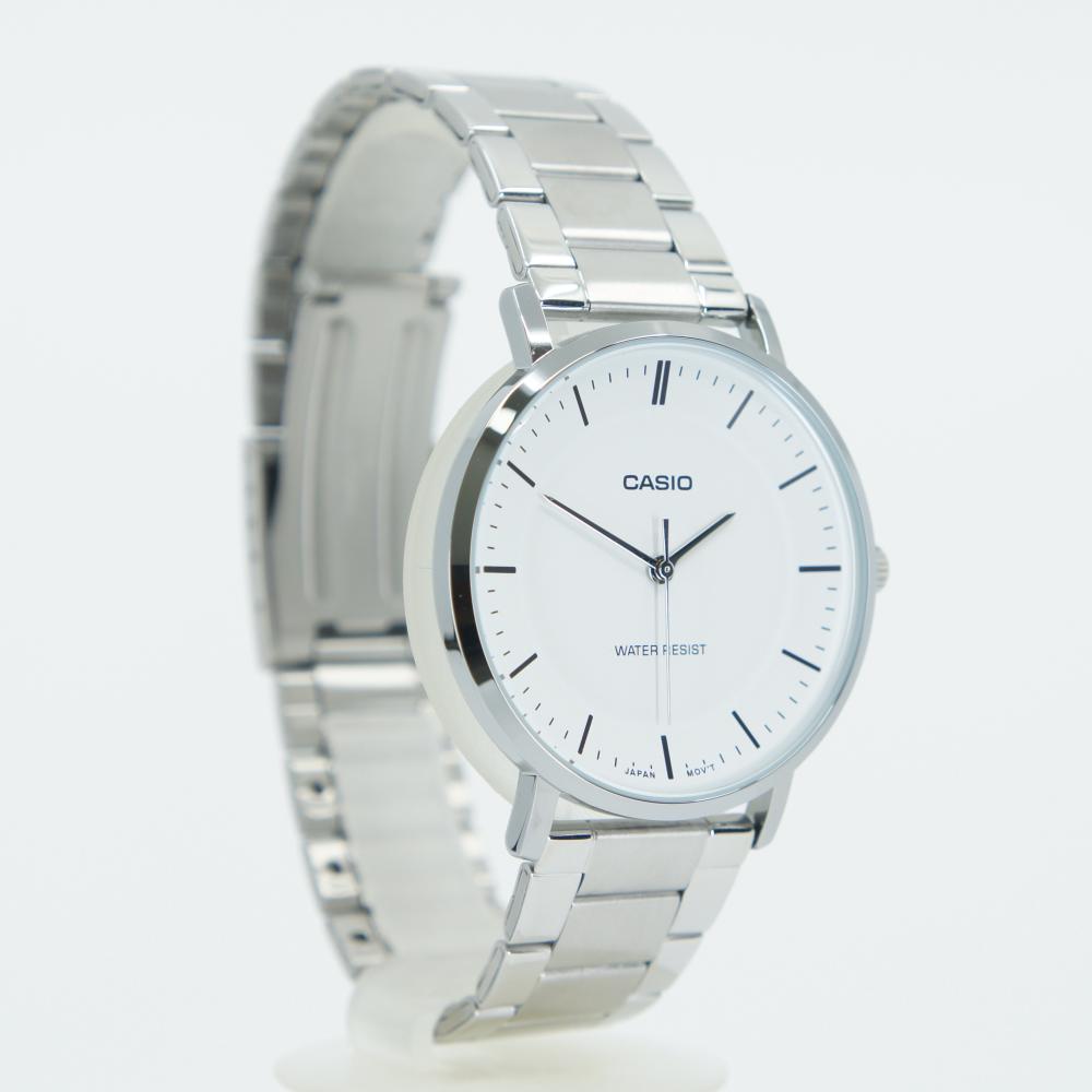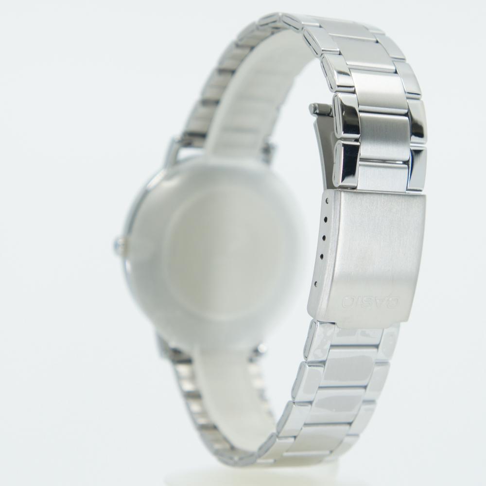 This wristwatch from Casio showcases a refined elegance through the harmonious combination of a deep white dial and a stainless steel case.